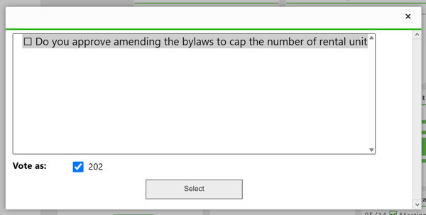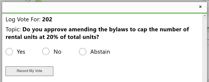 The system will show the Unit you’re voting on behalf of (e.g., Unit 202).